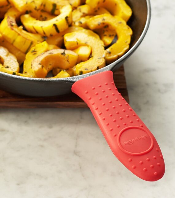 Works with a variety of long cookware handles including most cast iron skillets; sleek alternative to traditional pot holders and oven mitts